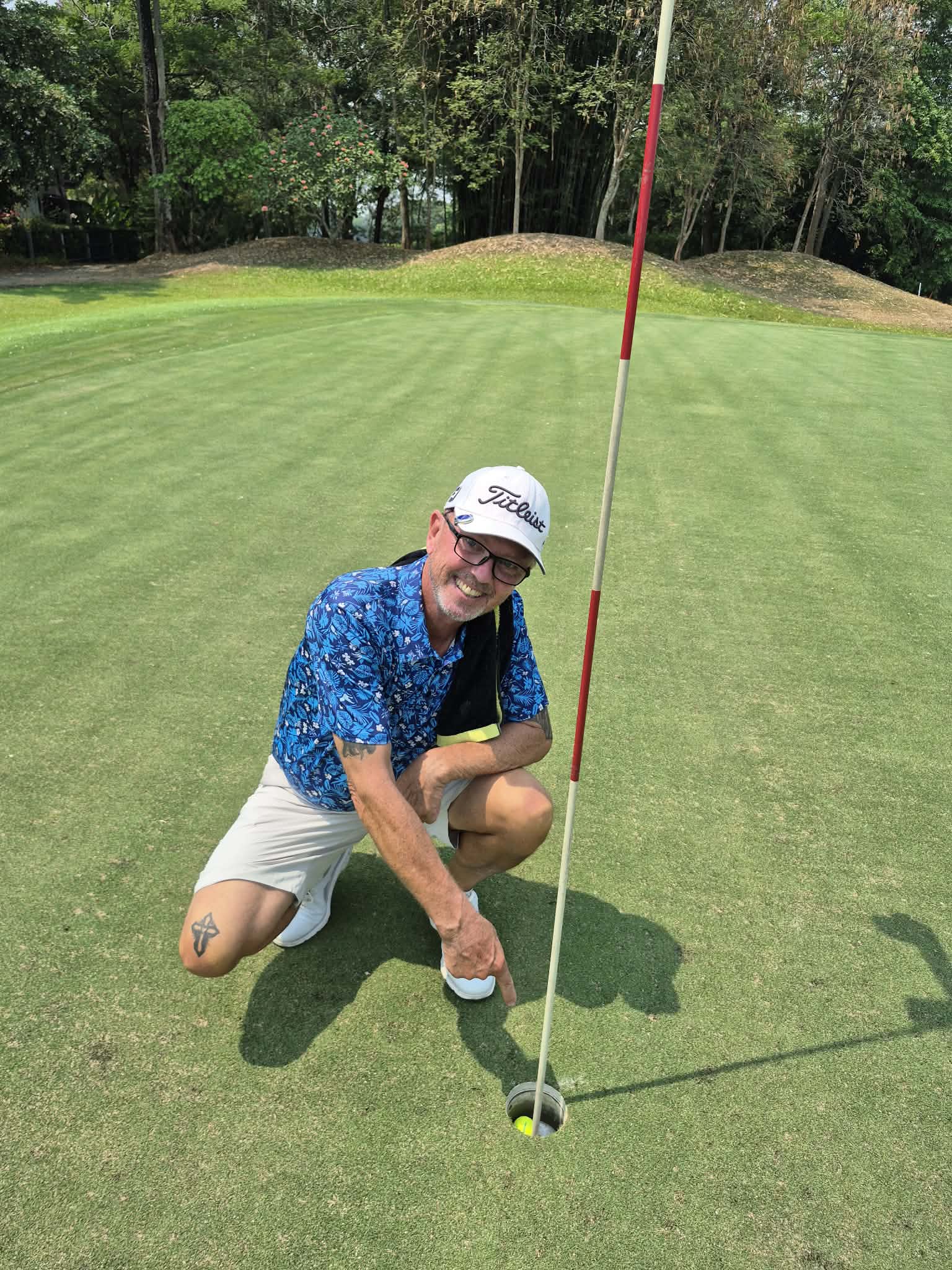 Another fine day at MaeJo, however the course was currently undergoing coring activities and also hole #1 was closed for rebuild, the management offered us #10 & #18 to play again, it was decided to play #10 again to complete our round as its handicap is similar to #1. Today their were 6 golfers and we played a stableford format, In 2nd place with a score of 32 points was Ken Warren, and the winner today with 34 points was Nigel Stubbs. The ‘Birdie Hole’ remains intact. The reduced numbers was mainly due to a competition between CMSG and Highlanders held at Chiang Mai Royal Golf Course.